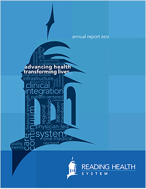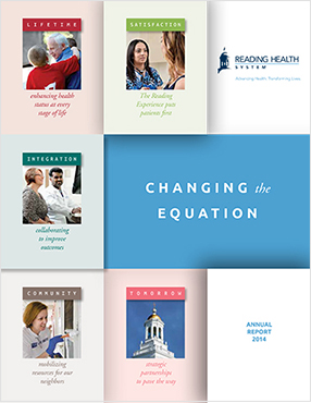 How well does your annual report define the mission and share the leadership’s vision for your organization? Each year we introduce themes that support key messaging for the Reading Health System. “With our emphasis on value and supportive community behind us, the future of Reading Health System remains bright — as does the enhanced wellness of the citizens of Berks County.” This is our 6th award-winning report for Reading Health System. The latest report just won the 2015 Communicators Award for Excellence in Communication. In each report the key messaging is delivered through word and image. For 2015 the theme was “Delivering Value” and the report introduced five strategic initiatives that enable Reading Health to deliver value to today’s healthcare consumer. Here’s a quick look back at the five previous reports and their themes.